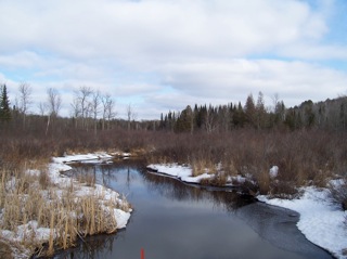 Lois and I include a stop and walk along the portage on a cold Valentine Day’s road-trip in 2009. A cozy B&B, Fo’c’sle Inn in the harbor of Cornucopia, WI was our final destination but we visited the National Park Headquarters in St. Croix Falls, which oversees the Scenic Riverways, the portage near Solon Springs WI, several bridges along the Brule, and the mouth of the Brule River on Lake Superior. And speaking of food (oh, wasn’t I), we were bummed to miss the famed donut Festival in Port Wing by one weekend. We did however, feast on local fish at the Village Inn just outside Cornucopia but stopped short of ordering the whitefish livers.